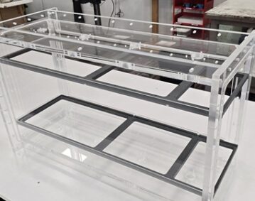 Podium réalisé en PMMA + gravure LASER.